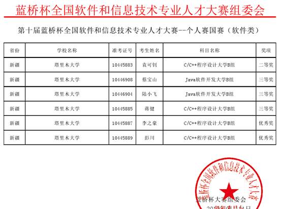 自2018年12月份起,公司yl23455永利集团开始组织了第十届“蓝桥杯软件设计大赛”的培训工作,经过为期半年的准备和努力,最终公司在第十届“蓝桥杯软件设计大赛”新疆赛区中获得了史无前例的优异成绩。公司参赛选手在软件类C/C++程序设计大学B组个人赛省赛中获得一等奖7人、二等奖10人以及三等奖5人;在软件类JAVA软件开发大学B组个人赛省赛中获得一等奖3人、二等奖7人以及三等奖1人;在电子类单片机设计与开发大学组个人赛省赛中获得一等奖4人、二等奖4人以及三等奖1人等。公司被评为“优胜学校”和“优秀组织单位”。