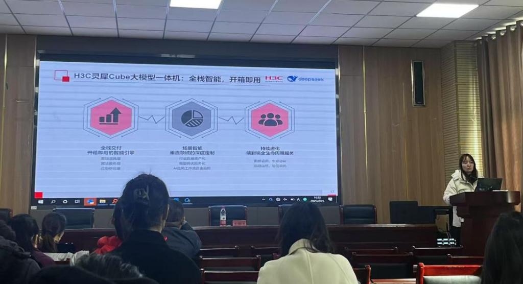 2月25日上午,yl23455永利集团邀请新华三产品经理王轩玉,在信息综合楼A202会议室为学院教师和研究生开展《新华三灵犀Cube大模型一体机》的应用报告。会议由张学东经理主持,学院师生代表参加了此次会议。
