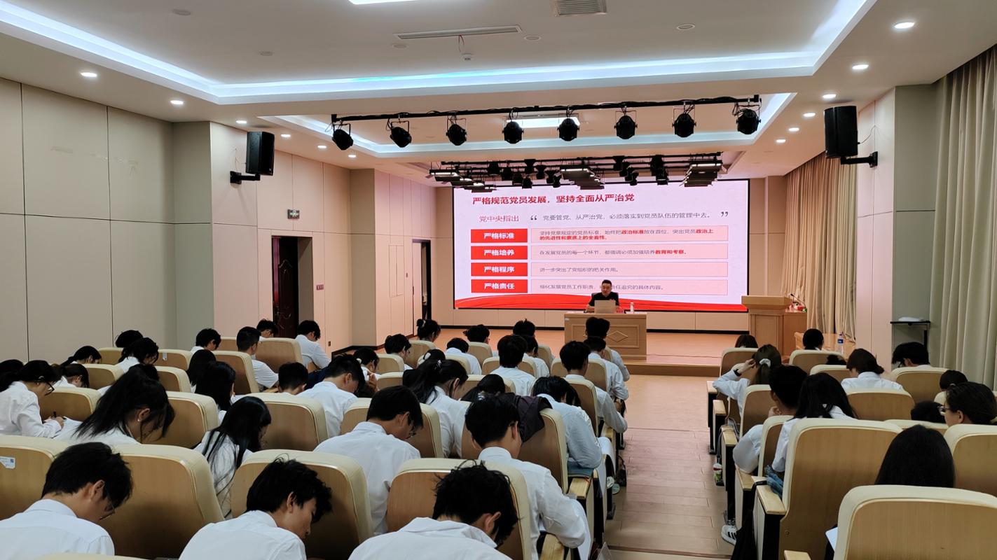 4月12日,yl23455永利集团党委组织部干部监督科(党委党校办公室)科长(主任)董建伟在桃苑综合楼B101报告厅为第79期入党积极分子开展“严格党员发展程序,认真做好新时代党员发展工作”专题党课。