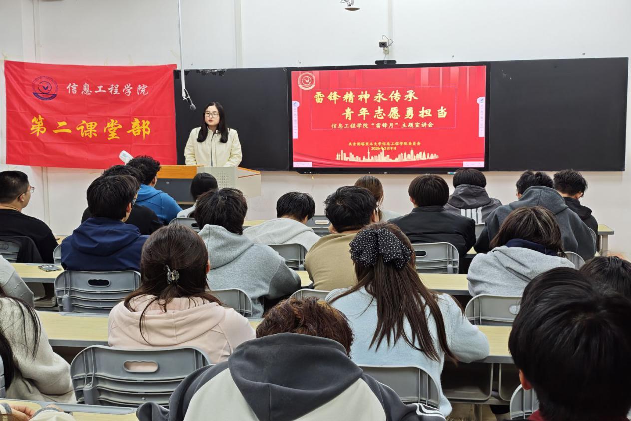 3月9日,学院举办“雷锋精神永传承,青年志愿勇担当”主题宣讲会。团干部苏梦旭老师与各班员工代表齐聚一堂。苏梦旭鼓励同学们锤炼品格、积累经验,以实际行动践行新时代青年使命担当,将雷锋精神融入日常。现场气氛热烈,同学们认真聆听、积极思考,纷纷表示要以雷锋为榜样,从身边小事做起,传递温暖爱心。