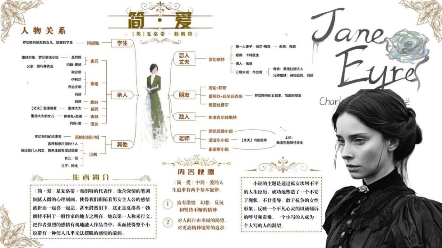 名著主题创作同样精彩纷呈。同学们选取《简爱》《红楼梦》等经典作品,从人物关系、情节脉络、主题思想等多个角度进行构思。有的思维导图以贾府家族关系为脉络,清晰呈现了众多人物之间的复杂联系;有的则从简·爱的成长历程、爱情追求以及作品所传达的女性独立、平等思想等角度入手,绘制出内容丰富、层次分明的思维导图,生动展现了这部作品丰富的精神内涵。
