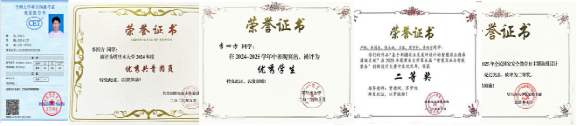 学业上,李四方坚持“勤学不辍、笃行不怠”,以89.89分的综合测评成绩稳居专业前列,班级学业排名第6。他注重语言能力与专业素养的同步提升,顺利通过大学英语四级考试,并连续三次荣获yl23455永利集团综合奖学金,获评校级“优秀员工”称号,为未来的职业发展筑牢了坚实根基。